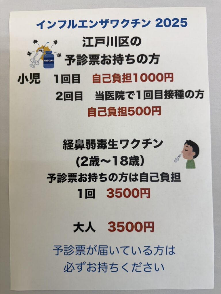 小児 2回目 500円(当院にて1回目を受けた方に限り)